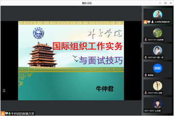 2022年1月19日晚,外交学系“空中课堂系列讲座——联合国工作实务与面试技巧”在腾讯会议线上平台成功举办。本场讲座由外交学系的牛仲君老师主讲,约150名听众参加了此次讲座。
