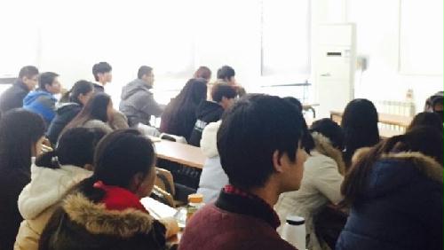 2015年11月26日下午,冬日的初雪映亮了温暖的教室,2015级大一全体新生安静而专注地坐在教室里,这里正在举办外交学与外事管理系第一次新生党课。党总支书记田丽颖老师以《把握人生方向架起未来桥梁》为题从几个方面为同学们进行了讲解。