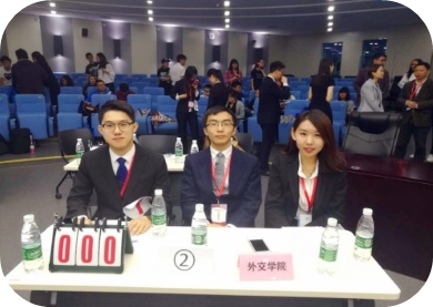 为更好的参与本次比赛,我系派出由党总支书记田丽颖老师领队、牛仲君老师作为指导老师的两个代表队,两支代表队表现稳健、机智,分别获奖,特别是由双培班组队的几名同学回到另一个母校,感到十分亲切,他们表示这次大赛也让他们学到了知识,认识了很多优秀的同学、朋友,对今后在外交学院的学习有了更加明确的目标。同学们表示,获奖不重要,更重要的是,在比赛中补充了对联合国知识及基本概念的了解,认识到了自己学习中的优势与不足,激发了对联合国研究的兴趣,大家的共识是每一份青年的力量和外交的情怀都是国家现在与未来所需要的。
