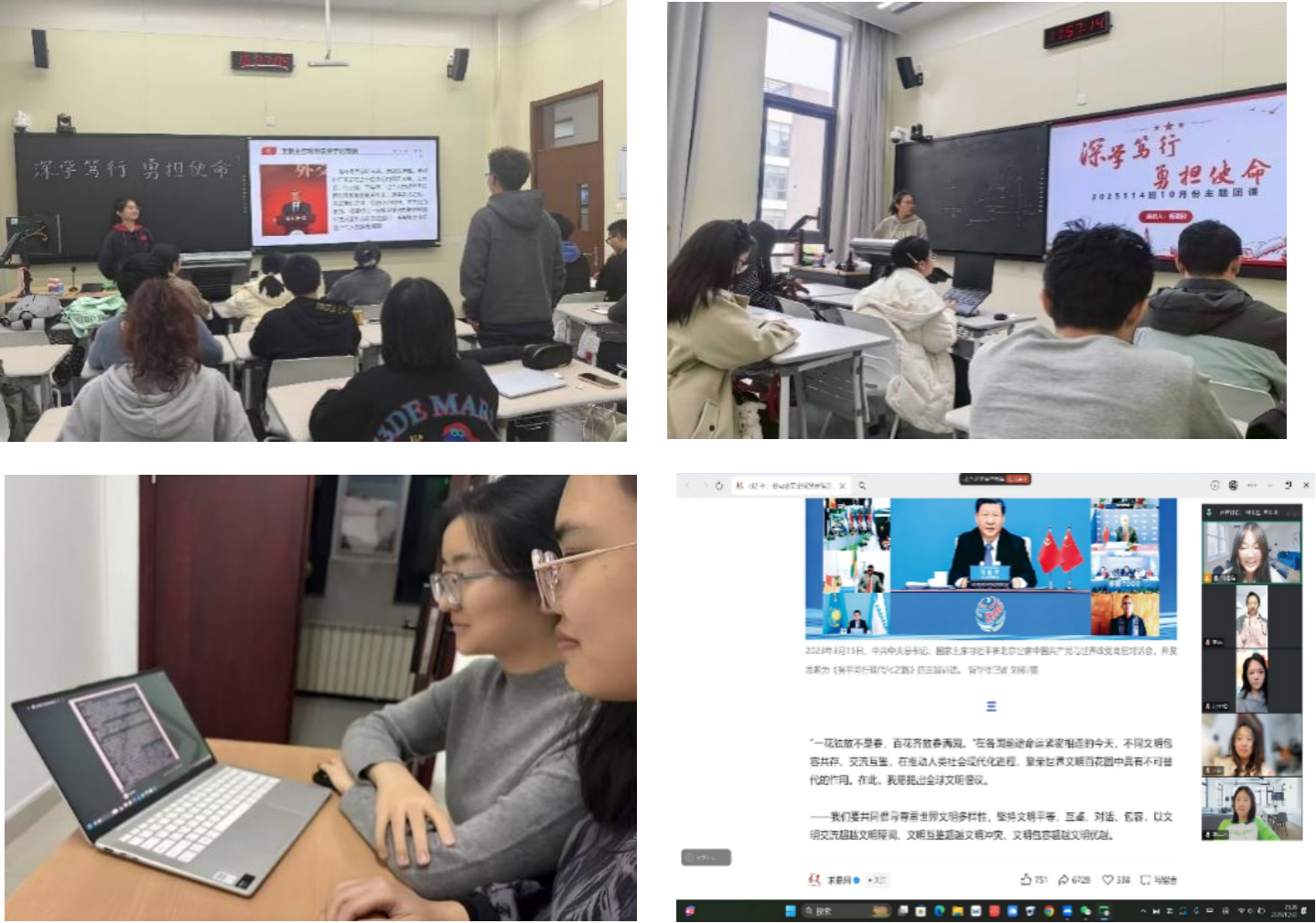 本次活动采取各团支部自行组织学习的形式,由各班团支书带领同学们学习习近平总书记重要文章《推动落实全球发展倡议、全球安全倡议、全球文明倡议、全球治理倡议》,以及王毅主任和齐玉书记在外交学院成立70周年纪念大会上的讲话。旨在引导同学们自觉学习习近平外交思想,深刻领悟四大全球倡议,感受中国特色大国外交的风采与智慧;同时促进同学们牢记外交学院的光荣历史和优良传统,明确外交学院在新时代为中国外交提供栋梁之材的伟大历史使命,树立积极投身中国特色大国外交伟大实践的远大志向。