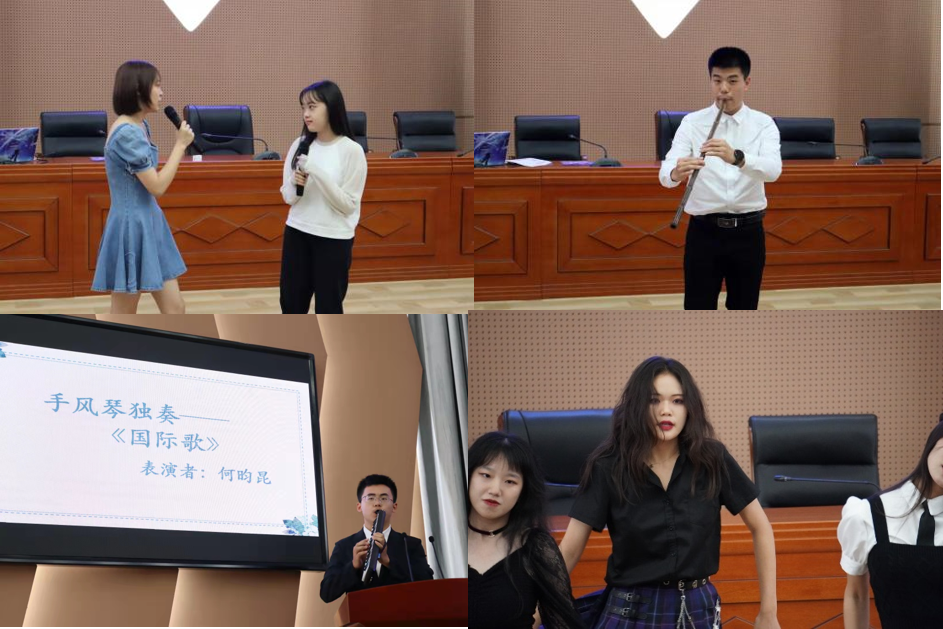 晚会节目中,同学们个个才华横溢,各显其能。或是在校园的夜里伴着昏黄的《光》默默行走,或在繁华盛世里聆听一曲箫声《我和我的祖国》,亦或是响起口风琴独奏《国际歌》让我们勿忘初心。大二学姐们也为新生带来了激情澎湃的街舞,博得全场喝彩。