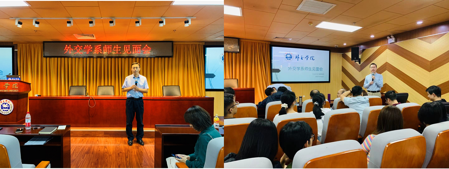 9月8日,外交学系2021级本科新生师生见面会在行政楼2012举行。我系全体教师与67名新生参与了此次新生见面会。首先,外交学系党总支书记郭延凯老师致辞。郭延凯老师对外交学系各位老师及新生的到来表示了热烈欢迎,希望各位新生不负韶华,只争朝夕,努力做新时代祖国外交事业的接班人和中国特色社会主义事业的优秀建设者。随后,系教学副主任梁晓君老师致辞。梁老师指出,大学是一个引领时代潮流的地方,也是一个充满各种新思想的地方。梁老师叮嘱新生,不仅要志存高远、还要保持身心健康。要多阅读经典文献,拥抱更广阔的世界。每位外交学系的老师都先后提出了对同学们的期望。唐晓老师指出,作为祖国外交事业的接班人,一定要站稳立场,熟悉业务。樊超老师指出,同学们要放平心态,保持高效学习的同时加强与他人交往的能力。周加李老师基于外交礼仪的知识,向新生们传达了关注生活中美和善的概念。施展老师则告诫同学们要选好方向,了解自身兴趣。老师们的寄语给予了新生很大鼓舞,同学们也与自己的导师进行了面对面的交谈,现场气氛友好热烈。这次师生见面会体现出我系一脉相承的人文关怀。未来,同学们必将坚定理想信念,把小我融入大我,把青春献给祖国。