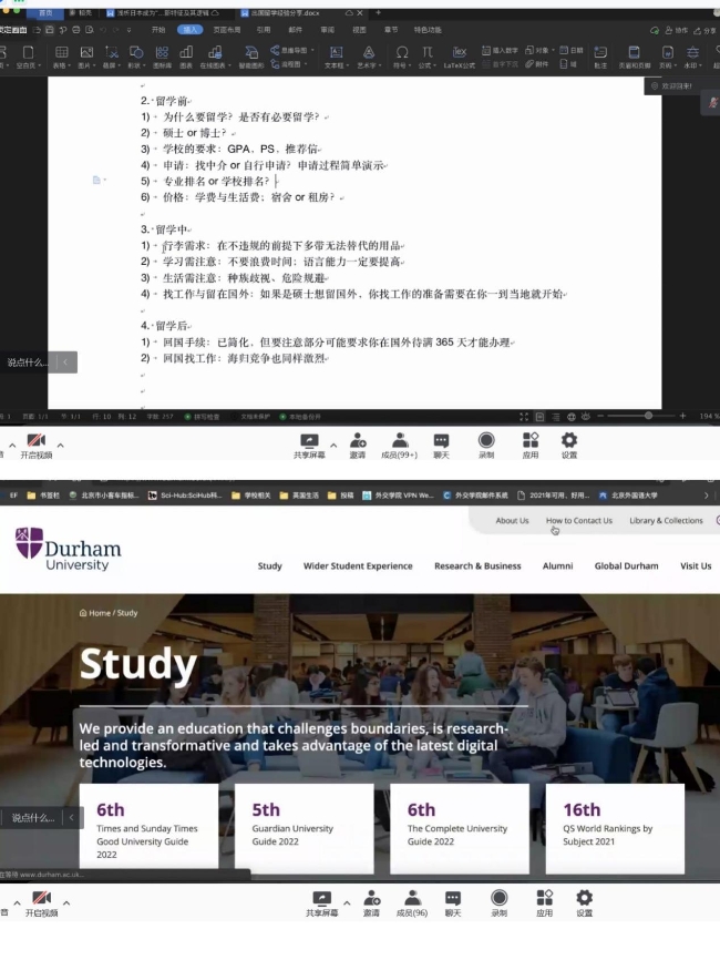 2021年11月17日晚,外交学系“交流交换经验分享”系列主题讲座在腾讯会议线上平台顺利举办。外交学系辅导员杨阳老师、主讲人陈实老师和具有出国交流经历的倪远诗、张晓昱、陈珈颐同学为大家详细讲解了出国交流交换政策和留学经验,大大增进了同学们对留学生活的了解。