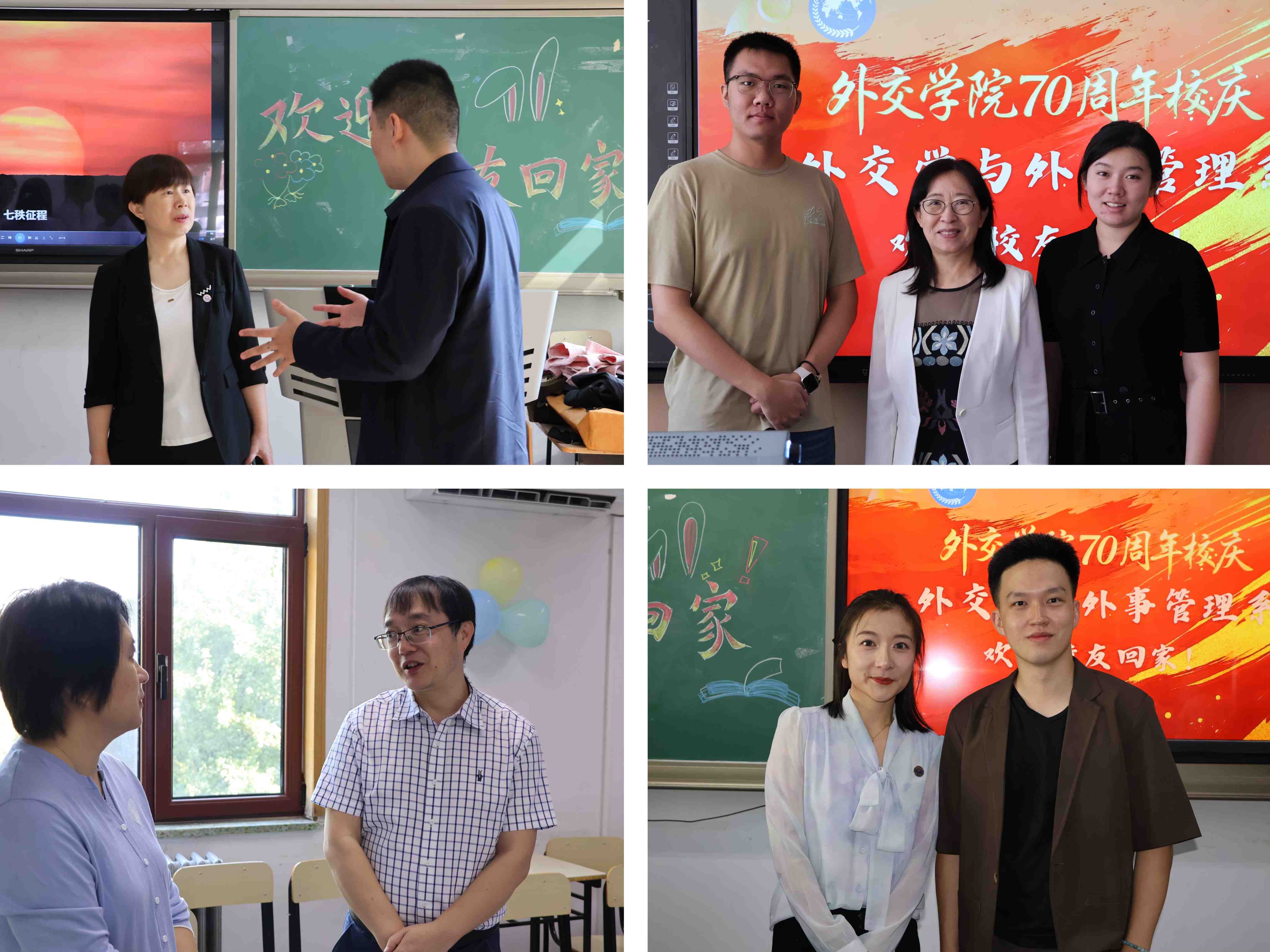 七秩峥嵘,风正帆悬。建校七十周年之际,2025年9月20日,外交学与外事管理系在展览路与沙河两校区同步举办 “校友返校日”活动。学院领导、系部师生与各届的校友们齐聚一堂,重温师生情谊、传递家国担当。本次活动兼具温情回望与务实交流,取得圆满成功。