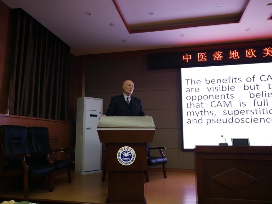 司马安教授一直致力于推进中克两国的友谊,在体育外交以及促进中医在克罗地亚的发展方面具有丰富的经验。在此次讲座中,司马安教授指出全球健康系统都在面临供应不足的挑战,其解题之道在于整合更多可供选择的医药方略,而并非局限于西方标准化的医学思路。他认为有五千年文明传统的中医在这一整合策略中占有极为重要的一席之地。中克双方已经在促进彼此之间中医人员的交流、培训、共医、研发等方面进行了深度的合作,而且正在推进在克罗地亚建立欧洲中医中心。欧洲中医中心是司马安教授于七年前在克罗地亚的国立大学-里耶卡大学医学院提议并着手建立的。多年来,在中国医药管理局和北大、北中医等顶级大学的支持,以及司马安教授和夫人赵丽塔博士的共同努力下,终于将中医的诊疗和教学落地欧洲。中医专家们可以以行医执照和工作签证来到克罗地亚,为来自世界各地的病患进行针灸、拔罐、推拿、艾灸等各种中医诊疗,得到了广大欧洲民众的认可和欢迎,用事实弘扬了中医的有效性,让人们信服了中华文化的博大精深。