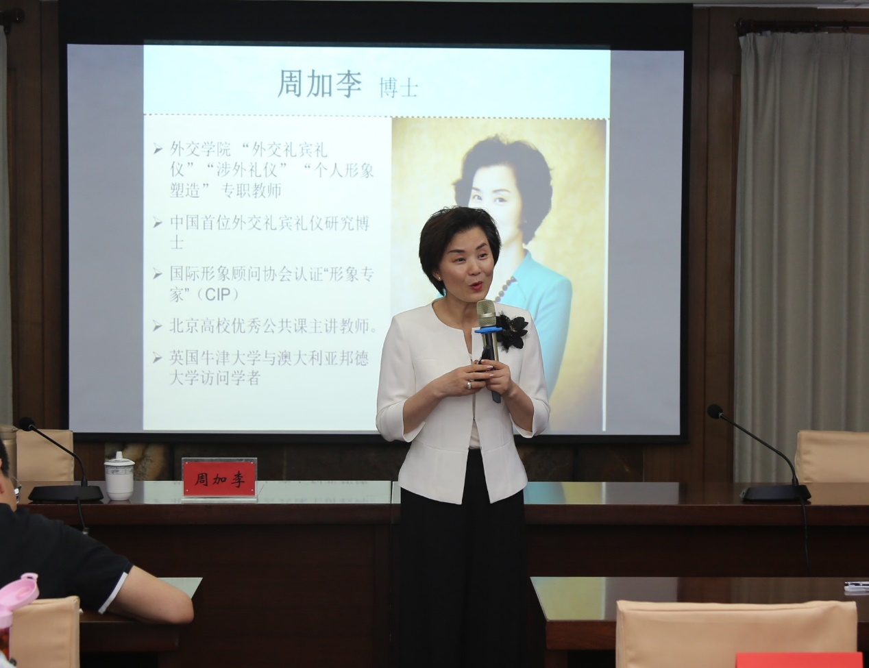 外交学院外交学与外事管理系周加李作专题讲座《如何推动外交礼仪课程建设》,通过典型案例和视频教学,分析外交外事礼宾礼仪的重要性,强调培养新时代外交官的必备素质——准确、沉着、耐心以及最为重要的“洞察力”。
