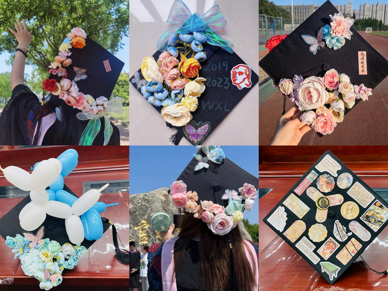 毕业典礼开始前的“我毕业啦”学士帽DIY制作活动中,毕业生们按照自己的喜好设计制作自己的学士帽。各式各样的仿真花、贴纸、彩笔、丝带等材料供他们挑选。制作学士帽的同时,同学们收获了满满的回忆与快乐。学士帽成为他们独一无二的毕业纪念。毕业生纷纷表示,非常感谢学校能让他们有机会制作自己的纪念品,这个活动既创新又有意义。