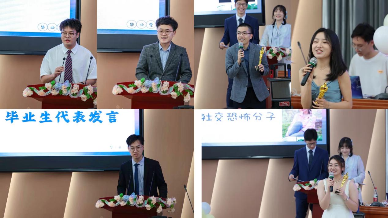 郭延凯老师代表系领导致辞。他希望毕业生们要学会如何和自己无法改变的不满相处,知道方向比努力有时更重要,知道选择与谁同行胜过要去的远方,并祝愿毕业生出走半生,归来仍是少年。