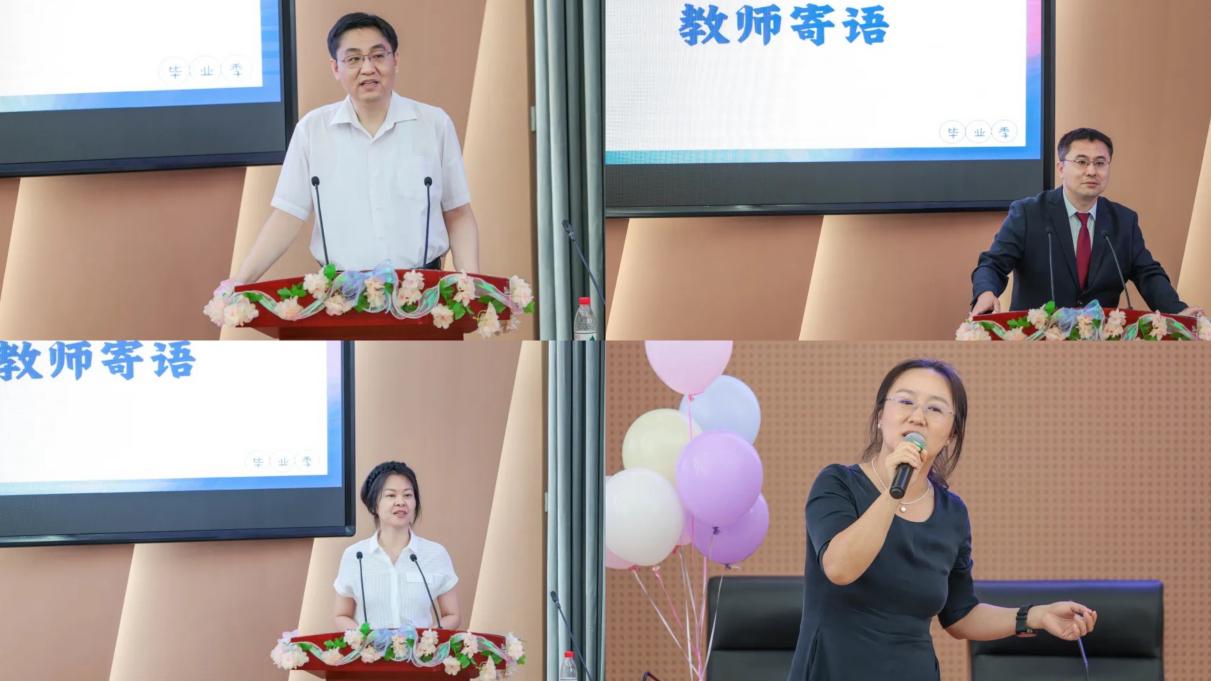 随着教师寄语环节的到来,现场的氛围被推向高潮。李潜虞老师以一句“桐花万里丹山路,雏凤清于老凤声”表达了对同学们的殷切希望;陈雪飞老师在发言中引用古诗“长风破浪会有时,直挂云帆济沧海”,祝愿同学们在未来的波涛里乘风破浪、扬帆起航;侯自强老师告诉同学们“人生如逆旅,我亦是行人”,希望毕业生能在“功成名遂了”之时“还乡”,“醉笑陪公三万场”。