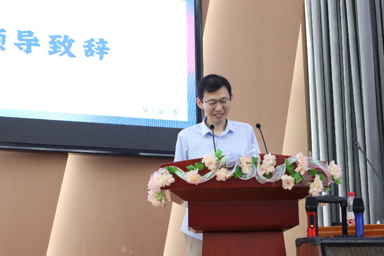 典礼伊始,樊超副教授为毕业生致辞,对同学们在本科四年中取得的进步表达了由衷的欣慰,并鼓励同学们勇敢、积极面对未来的生活。