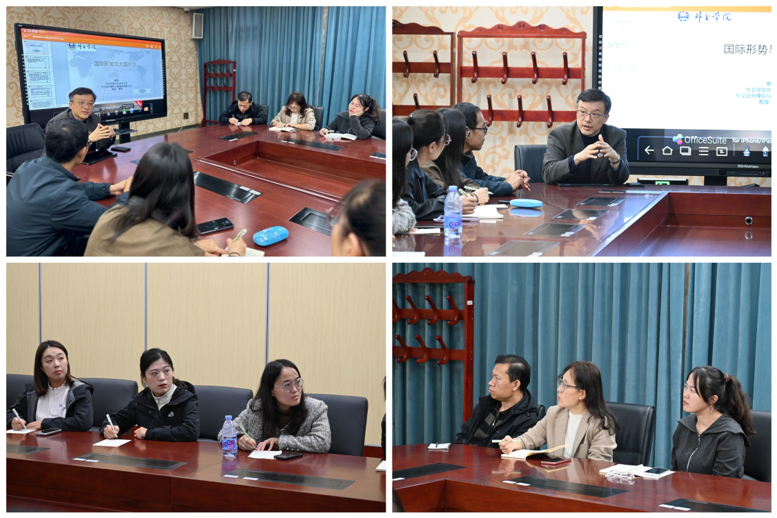 参观结束后,熊炜教授以“国际形势与大国外交”为专题为教师团举行讲座,结合学习党中央对国际形势的最新判断,分享对世界发展大势的观察和国际格局变化的分析,阐述复杂环境下开展国际交往与合作的重要性。
